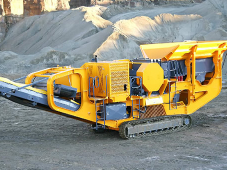 物料經(jīng)給料機均勻輸送到顎式破碎機內(nèi),經(jīng)顎式破碎機初破后的物料經(jīng)輸送機送入反擊式破碎機進行二次破碎,破碎出的物料經(jīng)振動篩篩分,滿足破碎要求的物料由輸送機輸出,不滿足要求的物料再次進入反擊式破碎機破碎,整個履帶式顎破+反擊破移動站生產(chǎn)線通過圓振動篩構(gòu)成閉路系統(tǒng),實現(xiàn)物料的循環(huán)破碎,成品物料由輸送機輸出,進行連續(xù)破碎作業(yè)。